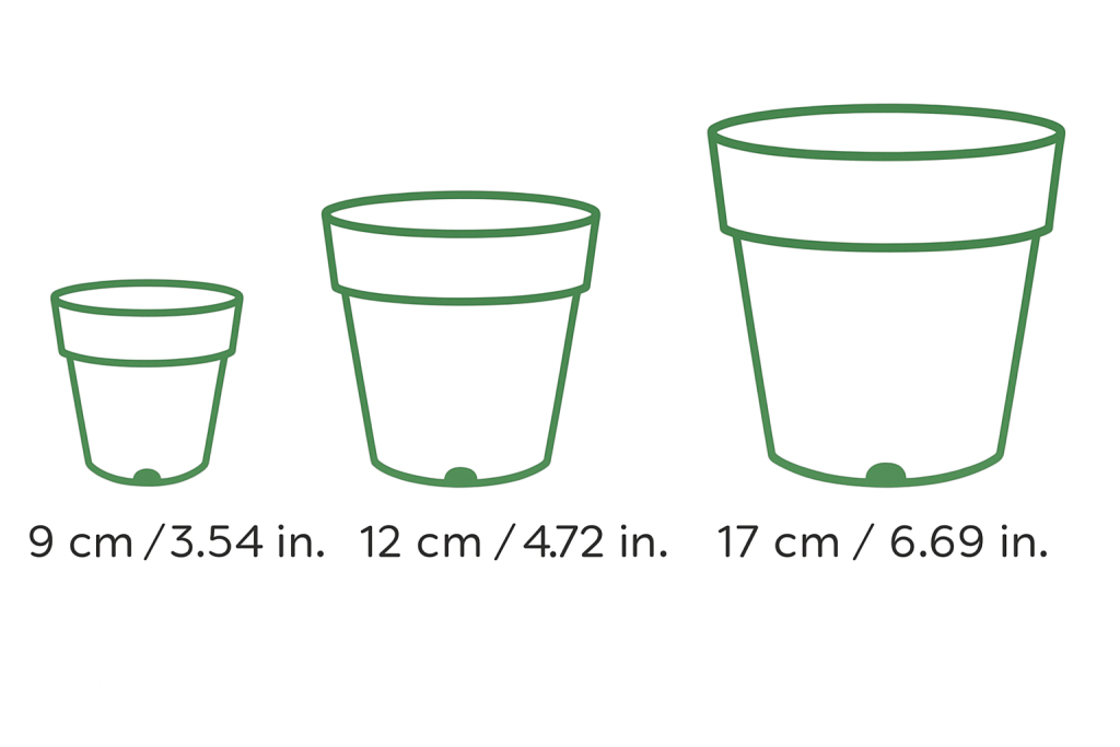 Our tan production containers are made from 100% certified post-consumer recycled plastic. Their simple design puts all the focus on the plant – and offers you the opportunity to cross-sell decorative containers.